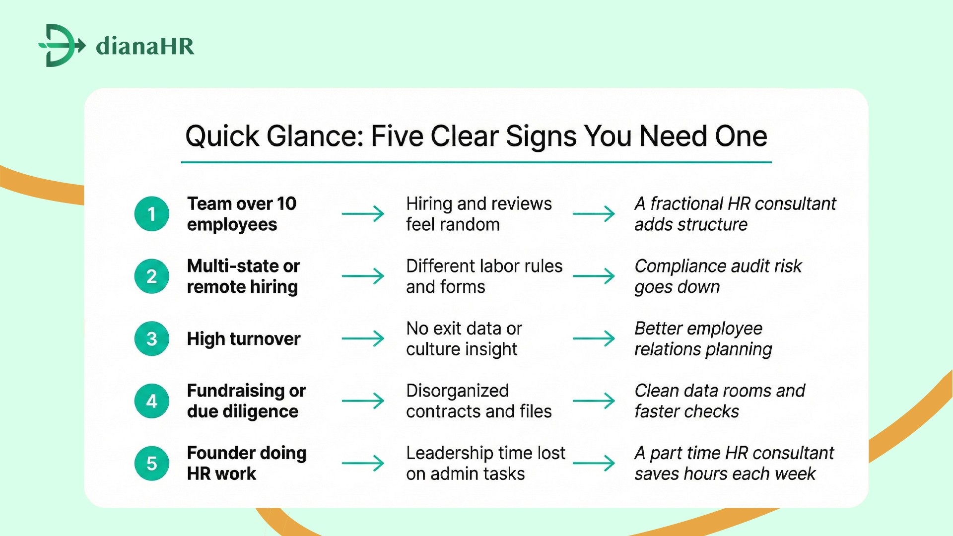 A fractional HR consultant becomes an ongoing partner who keeps people operations on track. Next, see the signs that show when it’s time to bring one in.